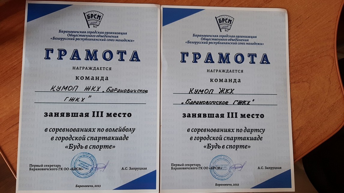По итогам соревнований команда КУМОП ЖКХ «Барановичское ГЖКХ» заняла 3 место в соревнованиях по дартсу и 3 место по волейболу. Участники команды награждены грамотами и медалями.