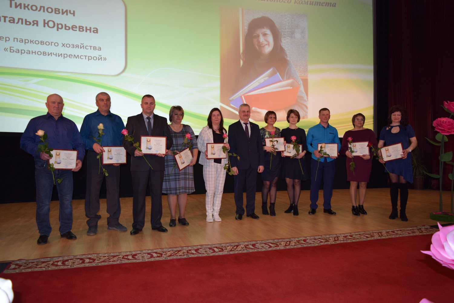 Председателем Барановичского городского объединения профсоюзов Соловей Еленой Сергеевной был вручен нагрудный знак «За заслуги» Республиканского комитета Белорусского профсоюза работников местной промышленности и коммунально-бытовых предприятий Макар Марине Михайловне, начальнику материально-технического снабжения и хозяйственной части КУПП «Барановичи коммунтеплосеть», председателю первичной профсоюзной организации, а также вручены Почетные грамоты и Благодарности Брестской областной организации Белорусского профессионального союза работников местной промышленности и коммунально-бытовых предприятий, Почетные грамоты Барановичского городского объединения профсоюзов.