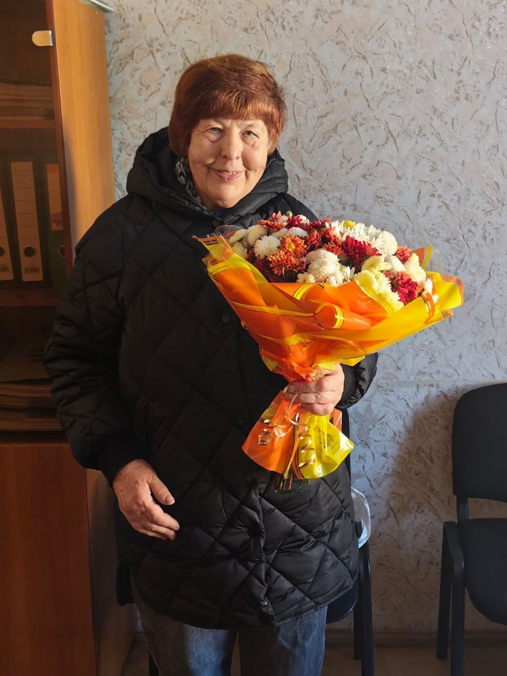 Ермакович Людмила Георгиевна отметила 75 день рождения. В прошлом Людмила Георгиевна главный агроном, можно сказать, что цветы были выращены ее руками.