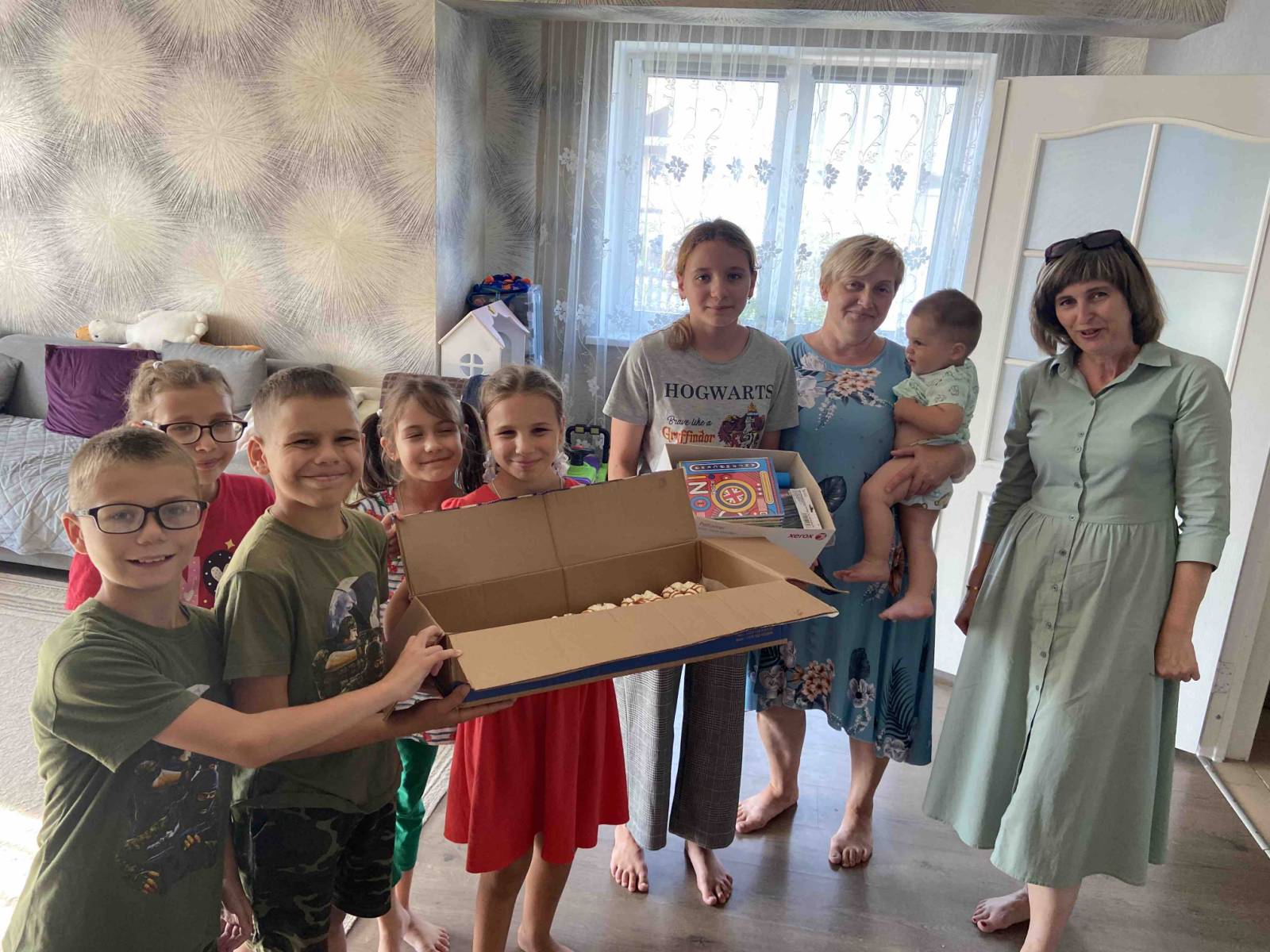 Председатель профсоюзной организации Сергель Евгения и представитель молодежного актива Попченя Елена вручили наборы для школы детишкам, находящимся в социальном приюте, и проживающим в детском доме семейного типа, а также работнику предприятия Варенику Илье, в семье которого растут 7 детишек.