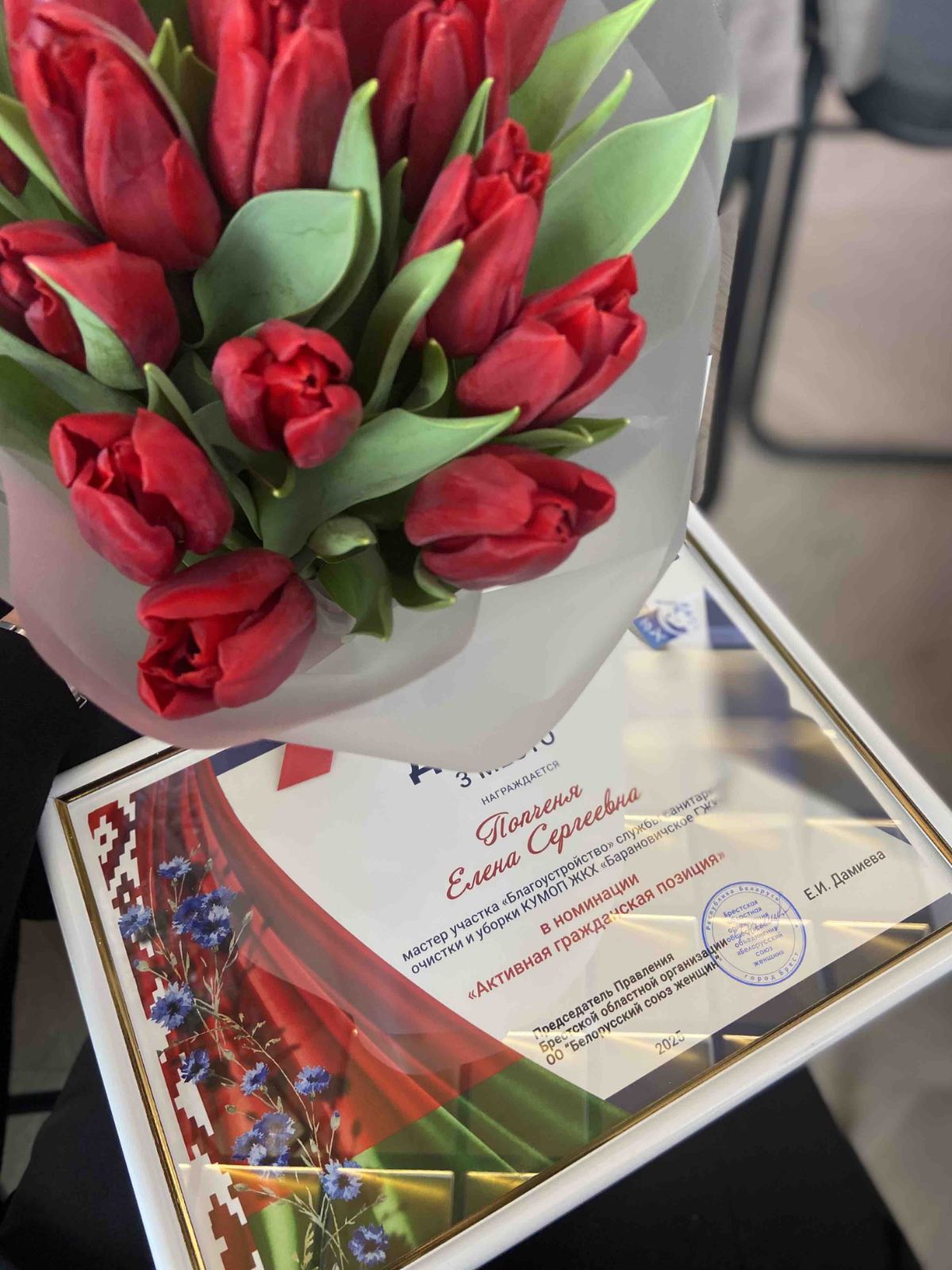 10 марта 2025 года Елена Попченя, мастер участка «Благоустройство» службы санитарной очистки и уборки городского ЖКХ, представила город Барановичи в областном этапе конкурса «Женщина года – 2024» в Бресте. Елена заняла 3 место по Брестской области в конкурсе «Женщина года – 2024» в номинации «Активная гражданская позиция».