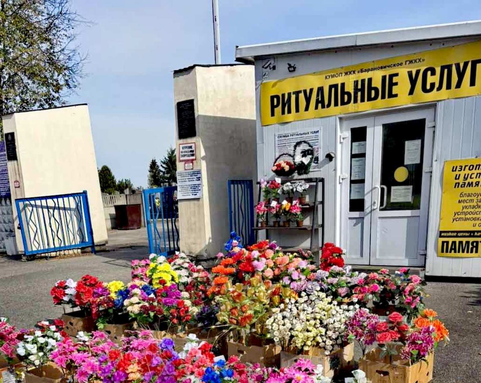 На кладбище Лесино, кладбище «Русино» службой ритуальных услуг КУМОП ЖКХ «Барановичское ГЖКХ» организована торговля искусственными цветами, букетами из цветов и другими сопутствующими товарами. Режим работы торговых объектов можно посмотреть на нашем сайте.