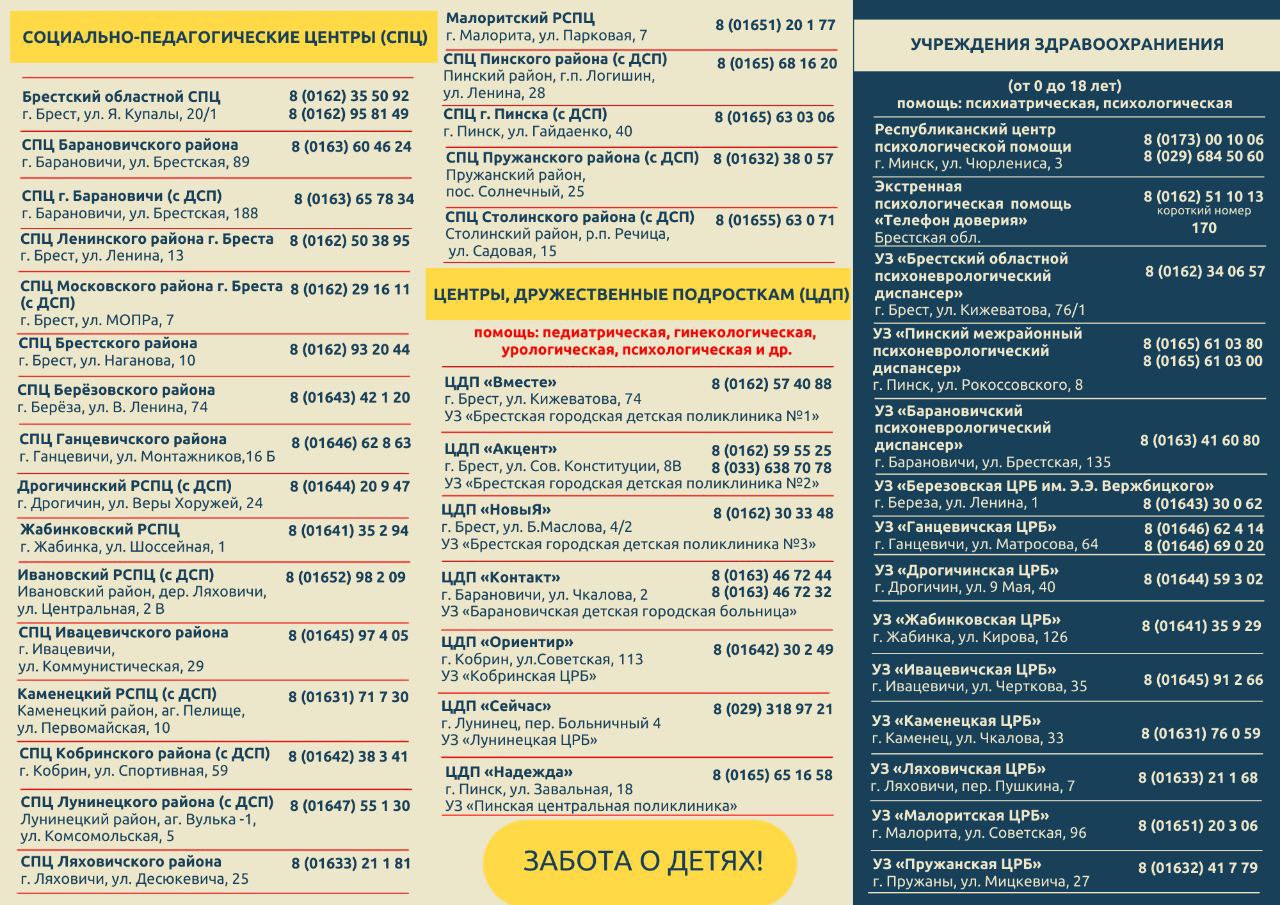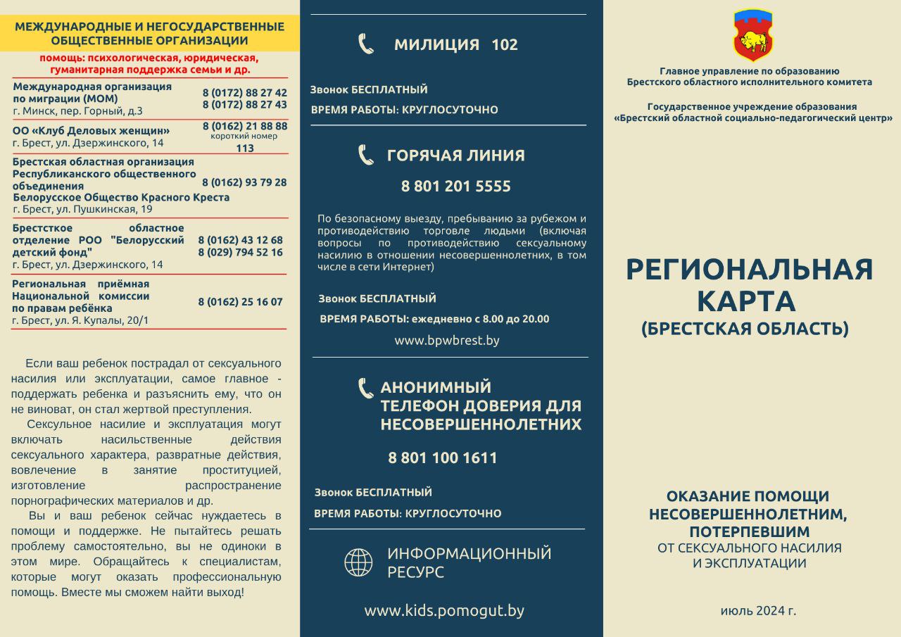 Региональная карта помощи несовершеннолетним, пострадавшим от сексуального насилия или эксплуатации по Брестской области. Форма Б